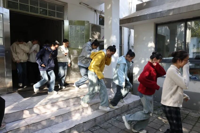 随着模拟警报声响起,应急疏散演练正式启动。各楼层疏导员引导学生按照预定的疏散路线快速有序地撤离。抵达集合点后,班主任迅速清点人数并向演练总指挥报告。